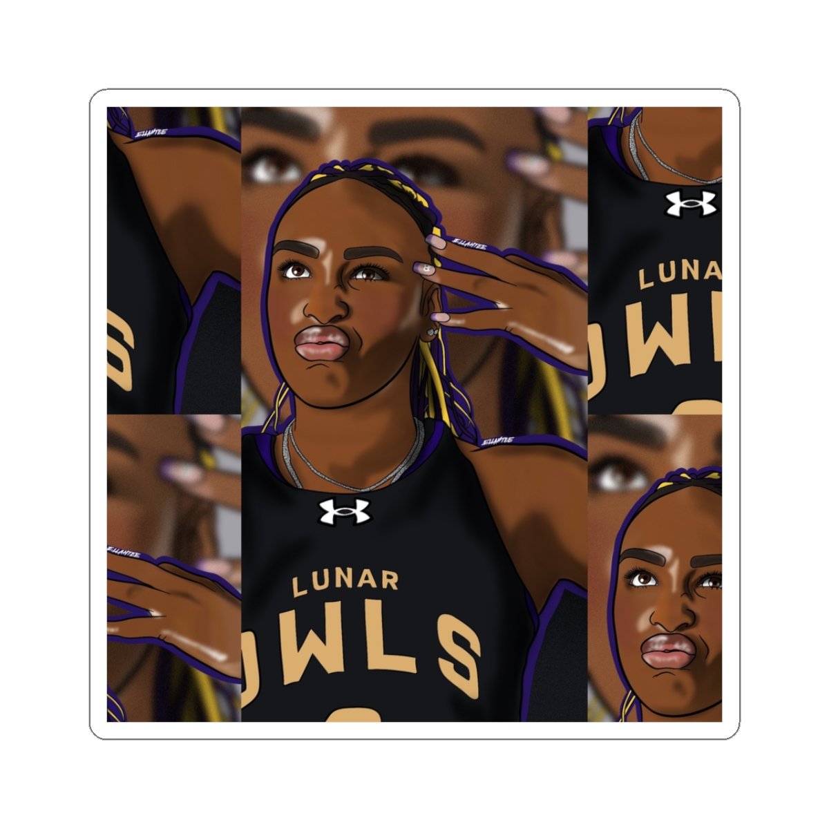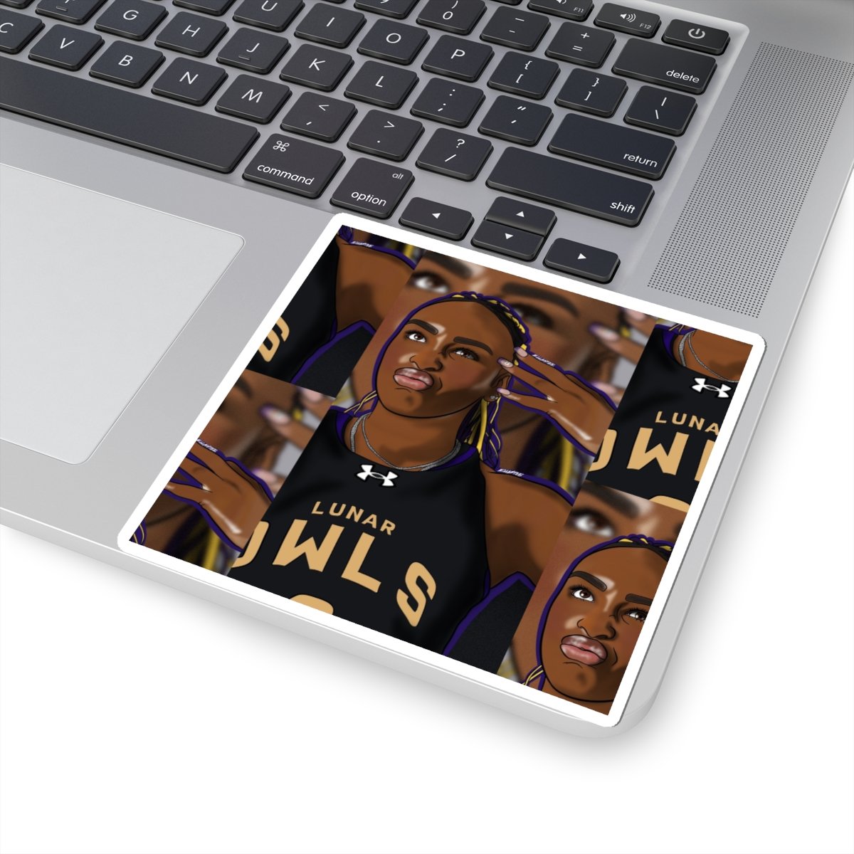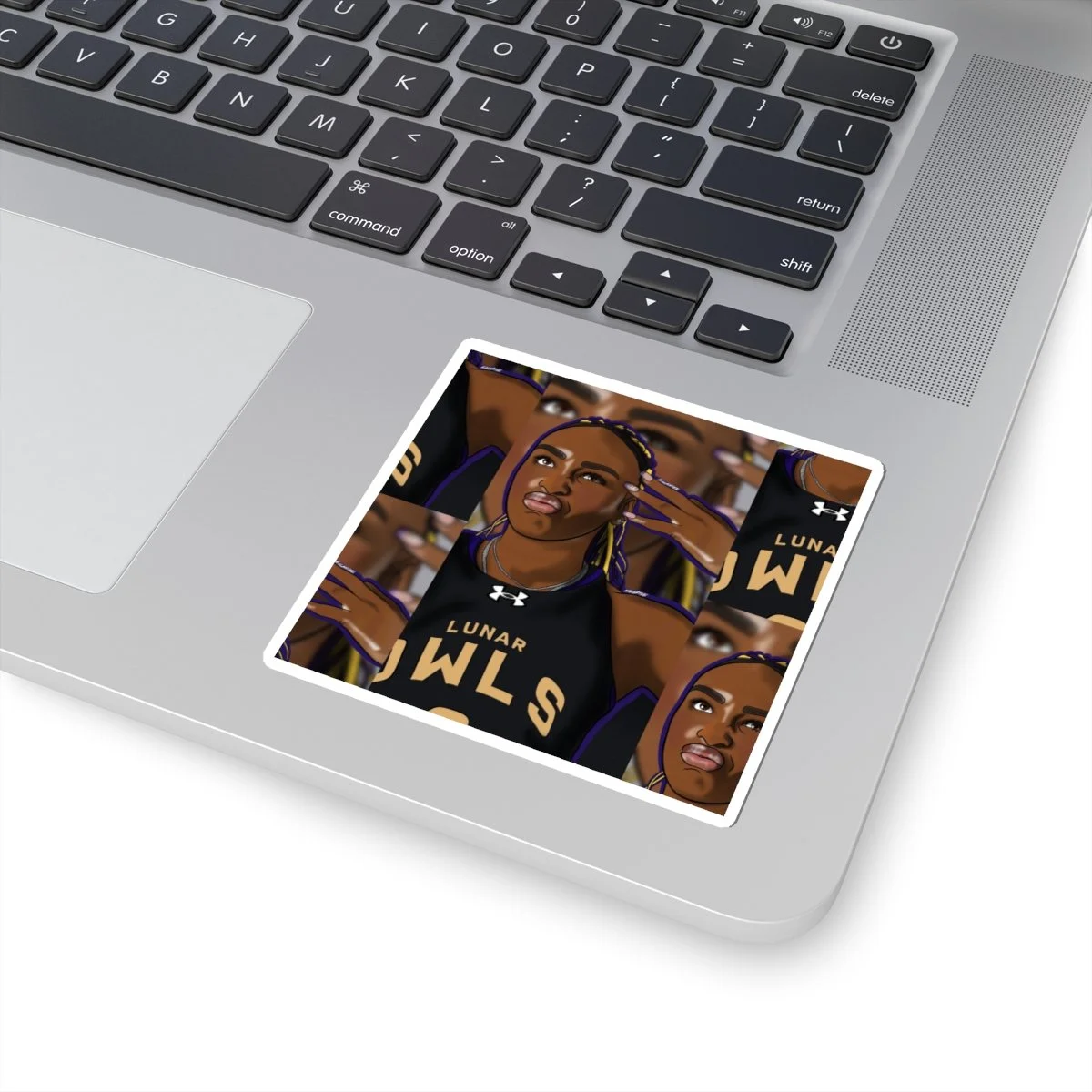 Bold, playful, and unmistakably proud — this kiss-cut sticker brings a fierce Aaliyah Edward's expression to your everyday gear. Printed on glossy vinyl with eco-solvent inks, the design’s deep blacks, warm skin tones, and purple-gold accents stay vivid on laptops, journals, and water-resistant surfaces around the house. The kiss-cut format makes the sticker easy to peel and apply smoothly with bubble-free adhesion; choose from 3 different sizes to match your placement. It adds a confident, team-spirit energy to your space and celebrates athletic swagger in a small, durable decal.