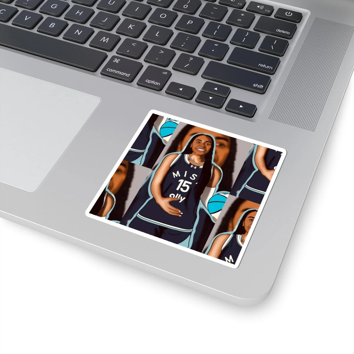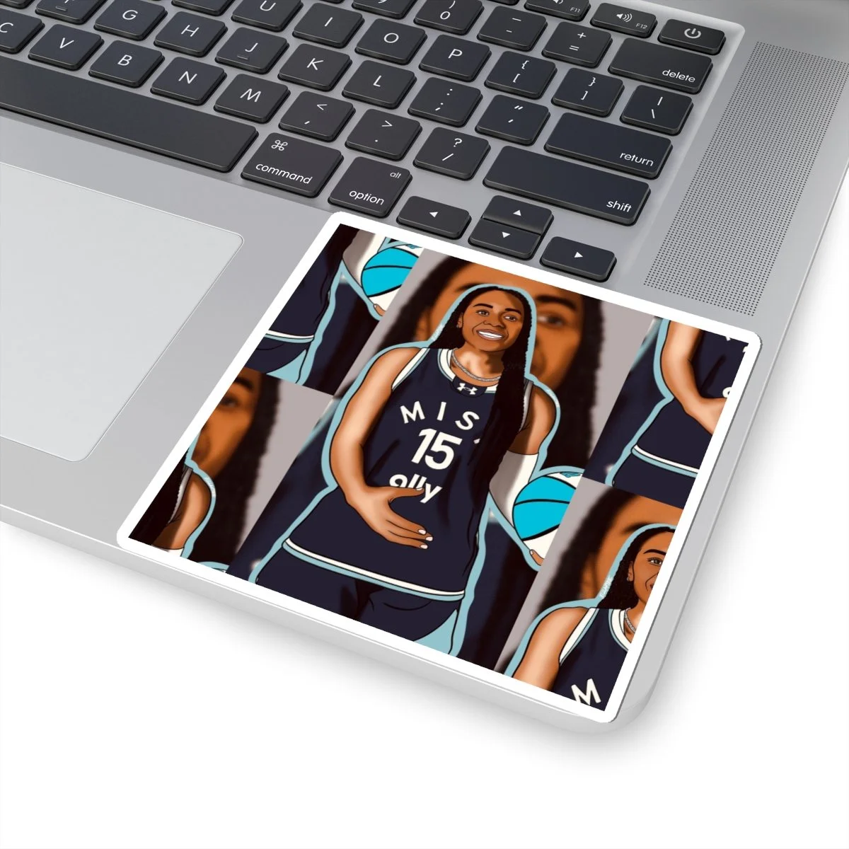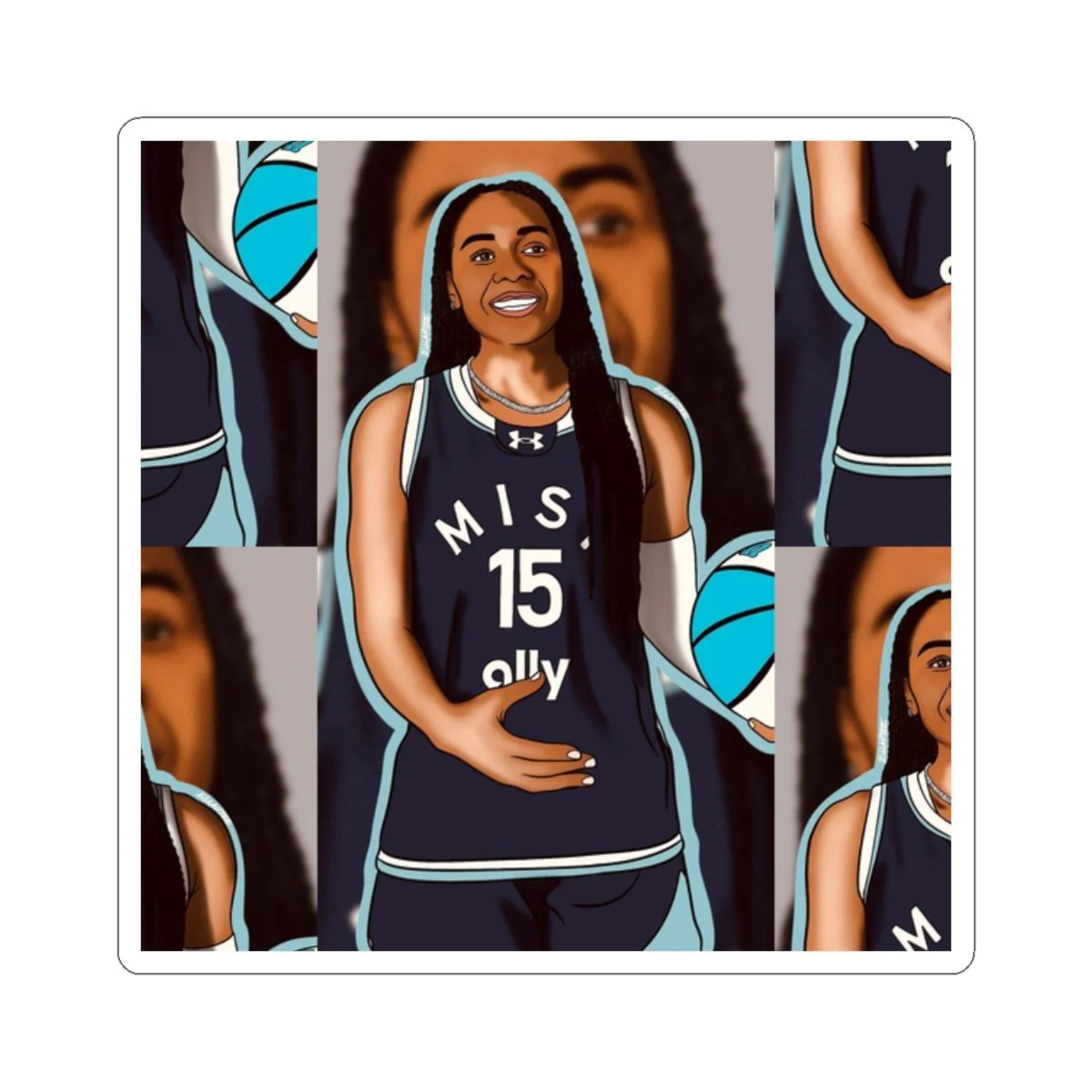A bright, glossy vinyl sticker that celebrates on-court confidence and team spirit. The design features a smiling Allisha Gray in her Unrivaled Mist BC uniform, repeated in a collage-style layout. Colors pop thanks to eco-solvent inks, and the kiss-cut format keeps the design easy to peel while preserving a thin white border. Stick it on laptops, journals, or water-resistant surfaces around the locker room to add a playful, athletic touch that highlights fandom and personal pride.