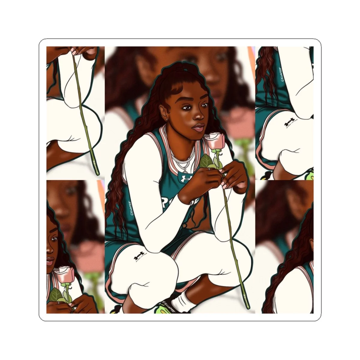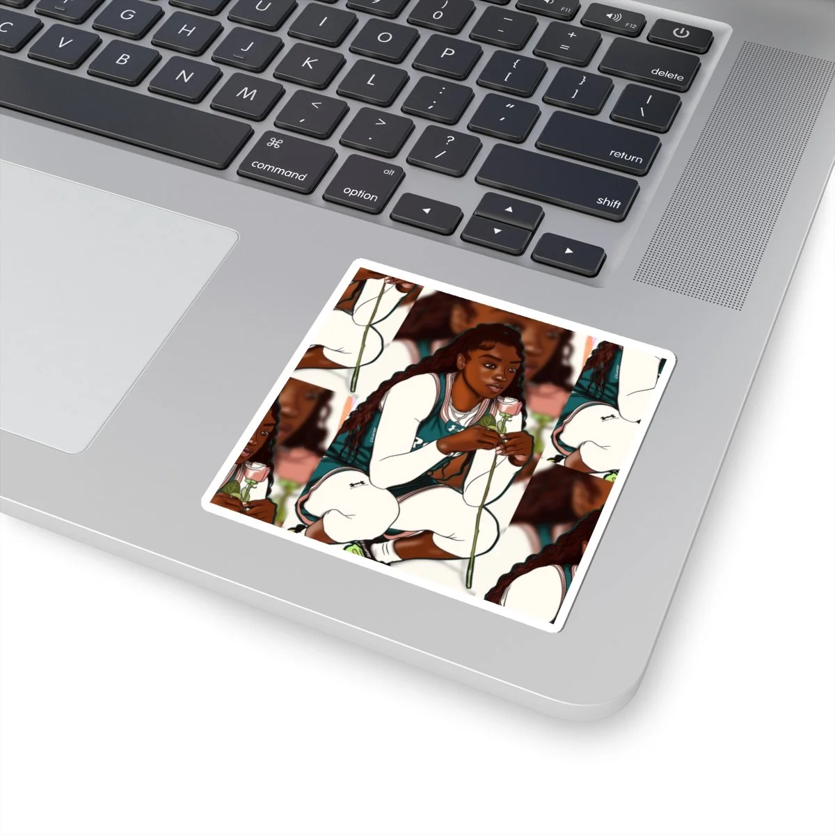 The art feels intimate and modern, designed to sit on your laptop, journal, or water bottle and add a touch of thoughtful style. Colors pop against the glossy finish, and the durable vinyl holds up to everyday use indoors. Whether placed among other stickers or standing alone, it brings a small, soulful accent to your personal space.